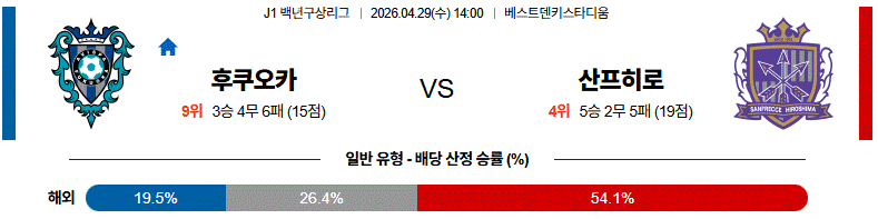 결국 후쿠오카의 조직적인 불안요소를 가장 직접적으로 찌를 수 있는 팀은 산프레체 히로시마이며, 원정 승리 시나리오가 충분히 성립되는 매치업이다.