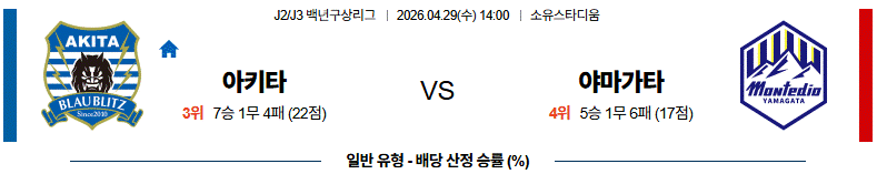 4월 29일 아키타 vs 야마가타 【 J리그2 】 해외축구분석