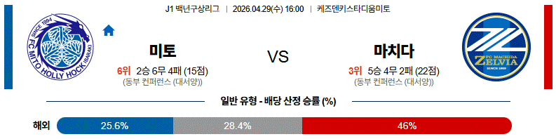 4월 29일 미토 vs 마치다 【 J리그1 】 해외축구분석