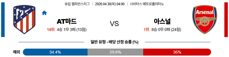 4월 30일 UCL AT마드 vs 아스널 해외축구분석