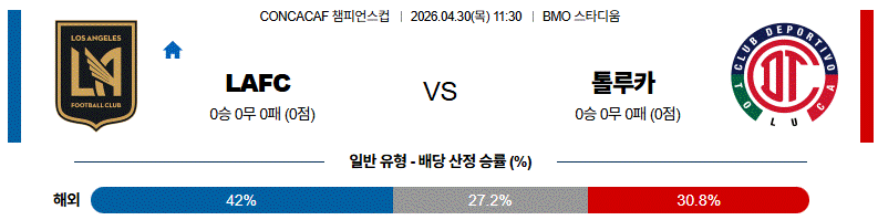 4월 30일 C챔피언 LAFC vs 톨루카 해외축구분석