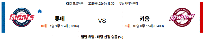 4월 29일 KBO 롯데 vs 키움 KBO야구분석