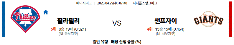 [메이저리그] 04월29일 샌프란시스코 vs 필라델피아 경기분석
