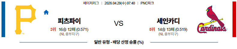 [메이저리그] 04월29일 세인트루이스 vs 피츠버그 경기분석