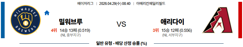 [메이저리그] 04월29일 애리조나 vs 밀워키 경기분석