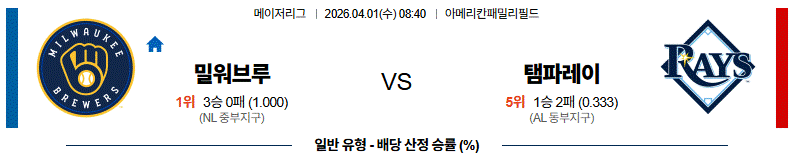 - 전체적으로는 저득점에 가까운 운영전이 예상되지만, 밀워키가 홈에서 한 차례 빅이닝을 만들 가능성이 있다. 탬파베이는 꾸준히 따라붙겠지만 뒤집기보다는 추격 쪽 그림이 더 가깝다.
