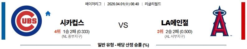 - 시카고C는 홈 이점이 있지만 에인절스도 타선 폭발력이 있는 팀이다.