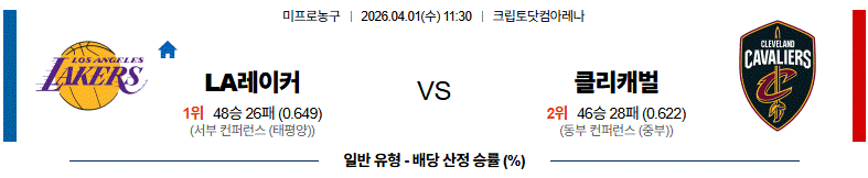 4월 01일 【 NBA 】 레이커스 vs 클리블랜드 NBA농구분석