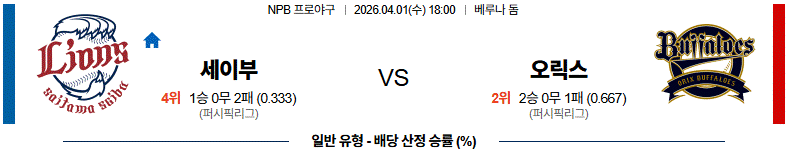 세이부 vs 오릭스 경기 분석은 전력 차이가 비교적 명확한 매치업입니다.