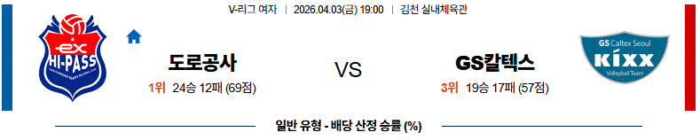 # 홈팀 : 한국도로공사(정규시즌 24승12패)