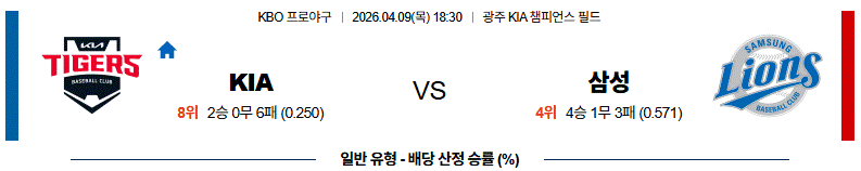 이번 KBO 경기는 시즌 초반 부진한 KIA와 안정적인 흐름을 보이는 삼성이 맞붙는 경기입니다.