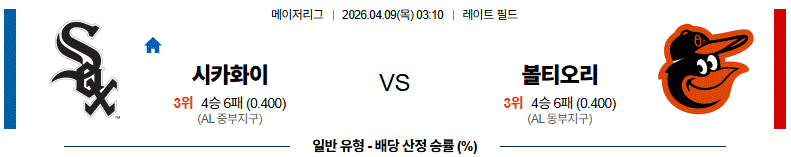 4월 09일 【 MLB 】 시카고화이트삭스 VS 볼티모어 MLB야구분석