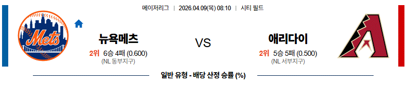 뉴욕메츠 VS 애리조나 : 마운드의 높이와 기동력의 정면 충돌