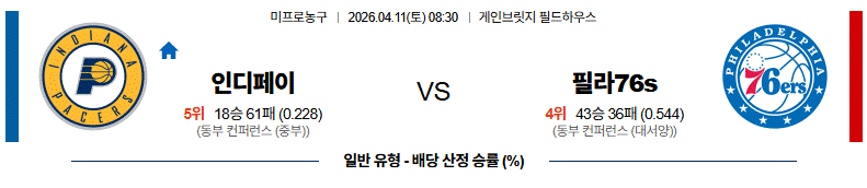 # 홈팀 : 인디애나(19승61패)