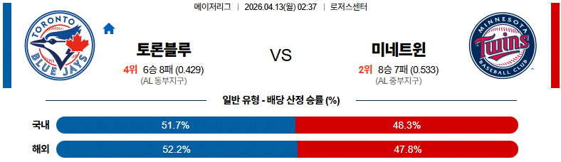 토론토 VS 미네소타 : 홈 팀의 득점권 집중력과 원정 팀의 투수 로테이션 정밀 분석