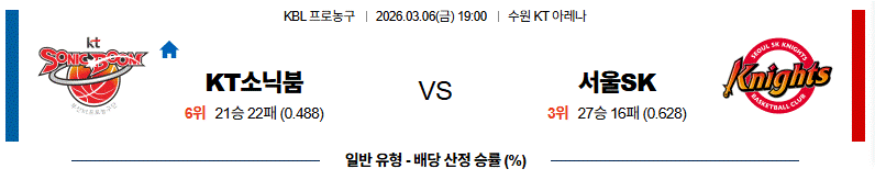 # 홈팀 : 수원 KT 소닉붐 (21승22패)