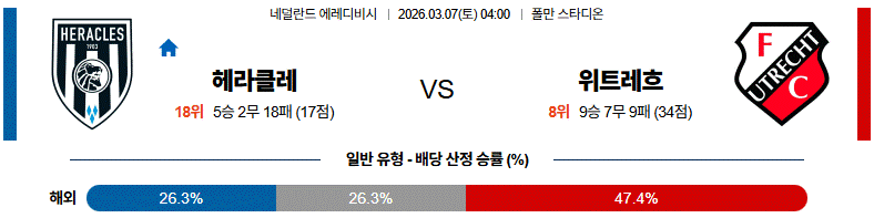 이 경기는 헤라클레스의 라인 간격 문제가 어느 정도까지 반복되느냐, 그리고 위트레흐트가 그 틈을 얼마나 효과적으로 파고드느냐에 따라 흐름이 달라질 가능성이 크다.
