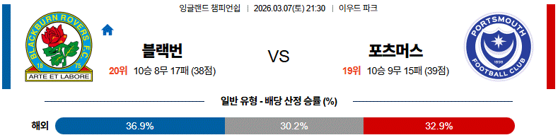 ⚠️ 포츠머스가 한두 번의 전환 공격으로 위협 장면을 만들 수 있는 여지는 있지만, 중원 구조와 압박 조직력의 안정성에서 앞서는 쪽은 블랙번이라는 점을 감안해야 하는 경기다.
