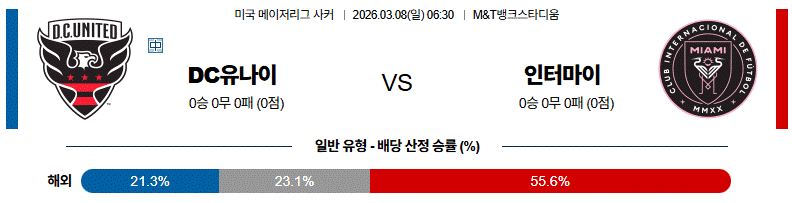 전체적으로 볼 점유, 찬스의 질, 박스 안에서의 결정력까지 감안하면, DC유나이티드의 구조적인 약점이 경기 내내 시험대에 오를 것이고, 이를 가장 날카롭게 파고들 수 있는 쪽은 인터 마이애미라고 보는 편이 합리적이다.