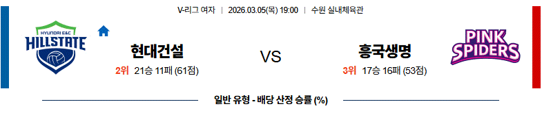 3월 05일 V-리그 여자부 현대건설 vs 흥국생명 배구분석