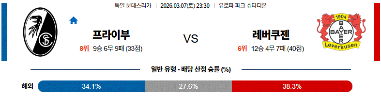 프라이부르크는 조직적인 수비와 빠른 전환을 활용하는 팀으로, 홈 경기에서는 활동량과 압박 강도가 높은 편입니다.
