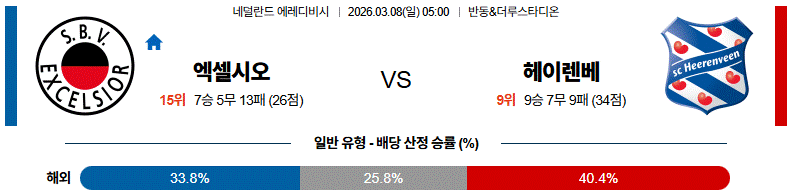 전술 구조와 후반 경기 흐름, 공간 활용의 방향성까지 모두 종합하면, 이번 경기는 엑셀시오르 승리와 다득점 구도를 염두에 두고 접근하는 시나리오가 충분히 설득력을 갖는 경기라고 판단된다.