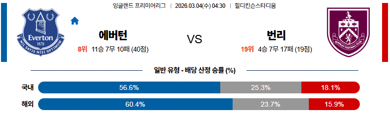에버턴은 홈에서 점유율을 활용한 공격 전개를 시도하며 경기 주도권을 잡으려는 흐름이 기대됩니다.