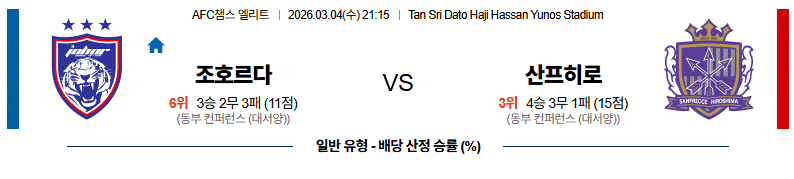 전체적으로는 조호르다가 점유율을 앞세운 흐름 속에서 경기를 이끌어갈 가능성이 높은 매치업입니다.