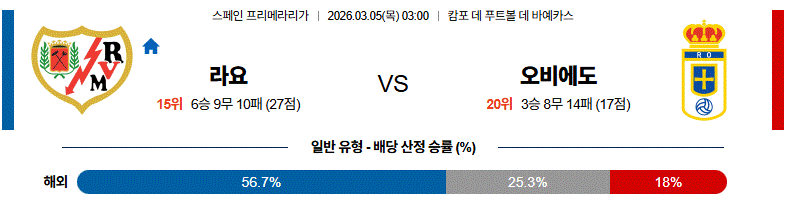 전체적으로는 라요가 우세한 흐름 속에서 한 골 차 승부 가능성이 높습니다.