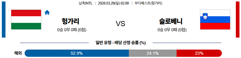 헝가리는 적극적인 압박과 빠른 공격으로 주도권을 잡으려 할 것이고, 슬로베니아는 수비 중심 운영으로 버티며 역습 기회를 노릴 가능성이 높습니다.