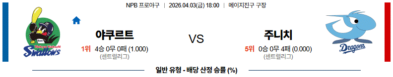 예상 승리팀 : 야쿠르트 스왈로즈