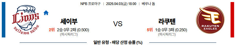 예상 승리팀 : 라쿠텐 골든 이글스