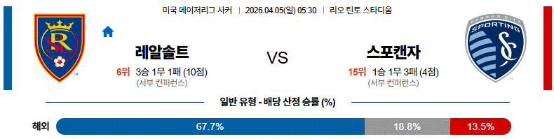 결국 이 경기는 솔트레이크가 측면 침투와 컷백 완성도로 켄자스시티 수비 균열을 집요하게 공략하며 우세 구도를 만들 가능성이 높다.