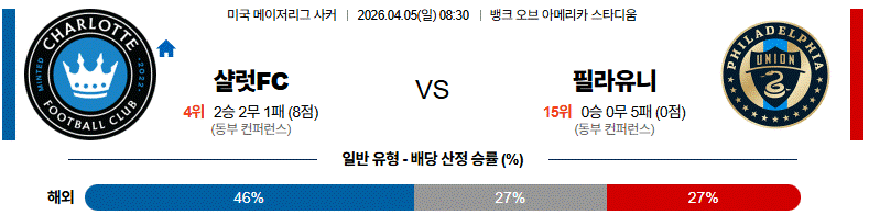 전체적인 흐름을 놓고 보면 홈에서 샬럿이 주도권을 쥐고, 상대 중원과 포백 사이 공간을 흔들며 승리 조건을 만들어낼 가능성이 높다.