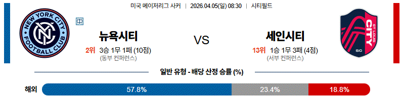 [승/무/패] 뉴욕시티 승 ⭐⭐⭐⭐ [주력]
