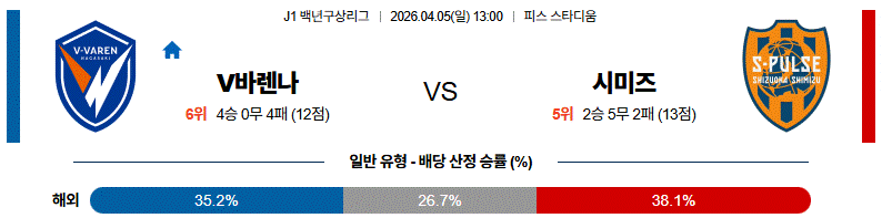 하지만 시미즈가 전방에서 먼저 기준점을 잡고 세컨볼 싸움까지 주도하기 시작하면, 나가사키는 자기 템포로 공격을 설계하기보다 수비 정렬부터 다시 맞춰야 하는 상황으로 밀릴 수 있다.