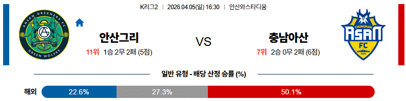 결국 이 경기는 충남아산이 전개 속도, 전진 패스의 퀄리티, 그리고 2선의 원터치 연결에서 앞서며 안산의 중원 성향을 정면으로 찌를 가능성이 높은 매치업이다.