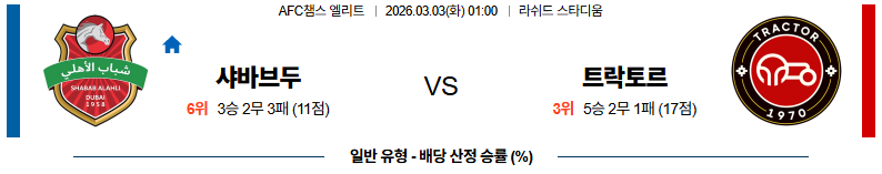 전체적으로는 샤바브두가 주도권을 유지하며 경기 흐름을 가져갈 가능성이 높은 전개가 예상됩니다.