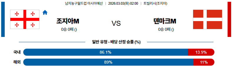 홈과 원정을 바꿔서 펼쳐지는 리턴매치 경기다. 조지아는 덴마크전 승리를 통해 분위기 반전에 성공했고 셍겔리아(PF)를 중심으로 한 피지컬과 높이 우위가 분명한 전력이다. 리드(PG)의 공격 조율과 맥패던(G)의 외곽 지원, 셰르마디니(C)의 골밑 장악까지 안정적인 밸런스를 유지하고 있으며 리바운드와 수비 집중력에서도 강점을 보인다. 특히 최근 맞대결에서도 경기 중반 이후 흐름을 장악하며 전력 차이를 입증했다. 반면, 덴마크는 룬드베르크(G)와 실즈(F)의 결장으로 공격 전개와 외곽 생산력이 크게 약화됐고 턴오버와 리바운드 열세가 반복되고 있다. 원정에서도 경기 후반 집중력 저하가 이어지고 있는 만큼 전력과 경험에서 앞서는 조지아 승리가 예상된다.
