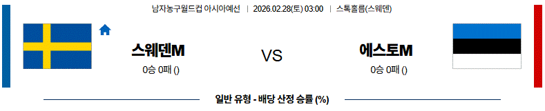 # 홈팀 : 스웨덴 FIBA 랭킹 41위(2패)