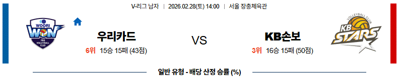 # 홈팀 : 우리카드(16승15패)