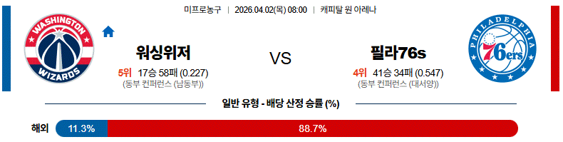 - 워싱턴이 초반 속공으로 분위기를 만들 수는 있지만, 필라델피아가 수비 정렬과 반코트 공격으로 흐름을 안정시키면 후반으로 갈수록 차이가 날 가능성이 높다.