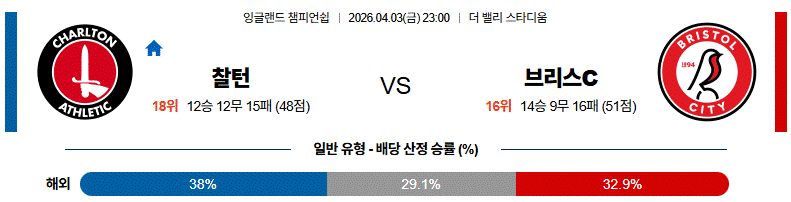 [승/무/패] 찰튼 승 ⭐⭐⭐⭐ [주력]