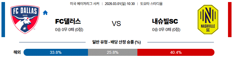 열람 축구 3월 01일 메이저리그사커 FC 댈러스 vs 내슈빌 SC 해외축구분석 1 6 02-27