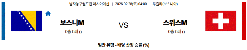 보스니아는 예선 2패에도 불구하고 세르비아전 접전을 통해 경쟁력을 보여줬고 전반 경기 운영과 조직력은 안정적인 모습이다. 아마르 알리베고비치와 에미르 술레이마노비치 중심의 공격 전개가 꾸준하며 인사이드 득점과 리바운드 경쟁에서도 강점을 보이고 있다. 다만 후반 집중력 저하가 변수지만 홈 경기에서 반등 가능성이 높다. 반면, 스위스는 조직적인 공격 전개와 수비 집중력 모두 불안한 상황이다. 세르비아전에서도 리드를 지키지 못했고 튀르키예전에서는 공격 효율이 크게 떨어졌다. 보스니아의 승리가 예상된다. 다만, 핸디캡 범위는 과하다고 생각된다.