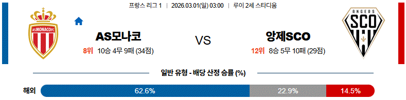 전반적인 경기 흐름은 AS모나코가 우위를 점하며 다득점 가능성도 열려 있는 매치업입니다.