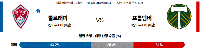 열람 축구 3월 01일 메이저리그사커 콜로라도 라피즈 vs 포틀랜드 팀버스 해외축구분석 1 6 02-27