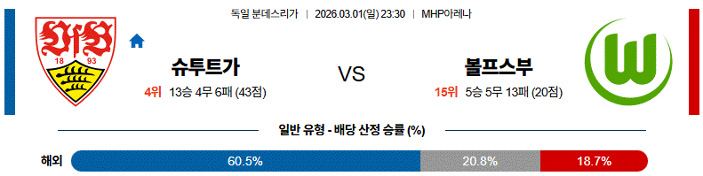 이 구조가 유지된다면, 슈투트가르트의 인프런트 크로스와 박스 안 장신 자원 조합은 볼프스부르크의 약점을 정면으로 찌르는 상성이 될 가능성이 높다.