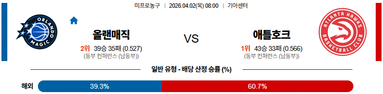 - 올랜도가 홈에서 수비 강도를 앞세워 템포를 낮출 가능성이 높다.