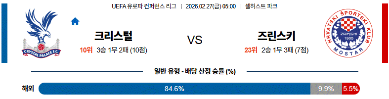 전체적으로는 크리스털 팰리스가 경기 운영에서 한 발 앞설 것으로 보입니다.
